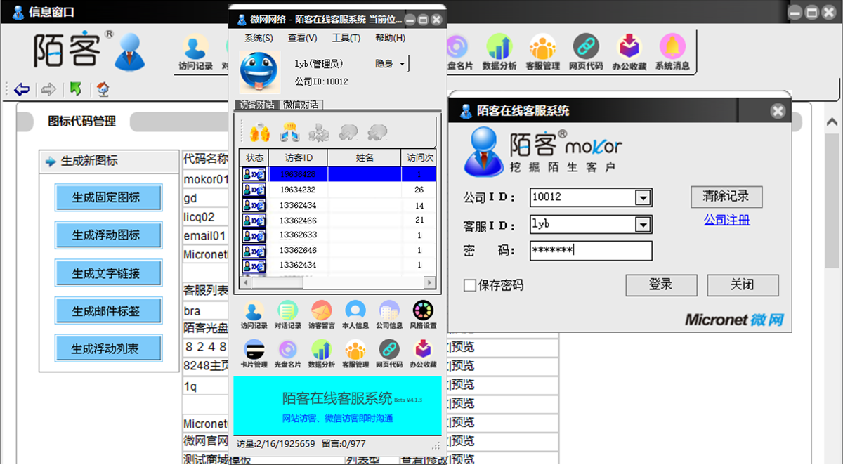 陌客mokor“訪客端”適應于微信商城、小程序商城、H5商城、PC商城、APP商城,集成在商城里,訪客無需安裝任何軟件即可使用。 “客服端”支持所有的windows版本安裝。